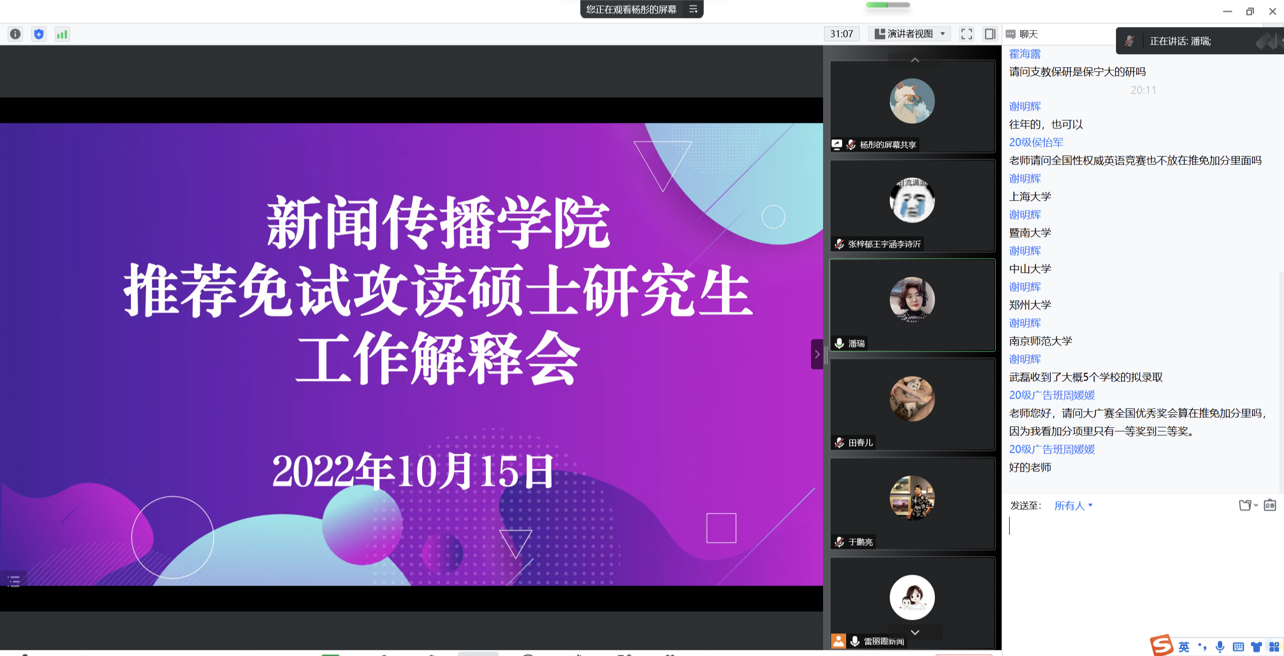 本次宣讲活动有助于学生全面了解推荐免试攻读硕士学位的途径,激励学生树立明确目标,做好生涯规划。