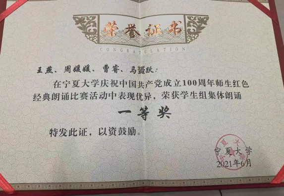 支部积极组织同学们参加各种学习竞赛、体育竞赛、知识竞赛与讲座,如“大学生创新创业训练比赛”、“三下乡”、“大学生配音比赛”等等,建设具有凝聚力、吸引力和感召力的优秀集体;团支部还经常组织各种实践活动,如贺兰山博物馆采风速写活动,配音团建活动等等,为同学们提供一个学风优良、蓬勃向上的环境;团支部积极组织同学参与各种志愿服务活动,包括中阿博览会志愿活动、疫情防控开展,核酸检测等等,其中数位同学获得了校级优秀志愿者的荣誉称号。