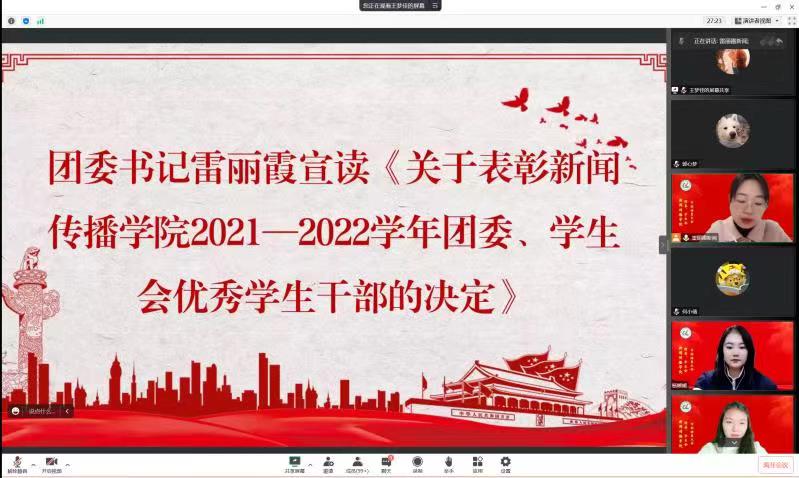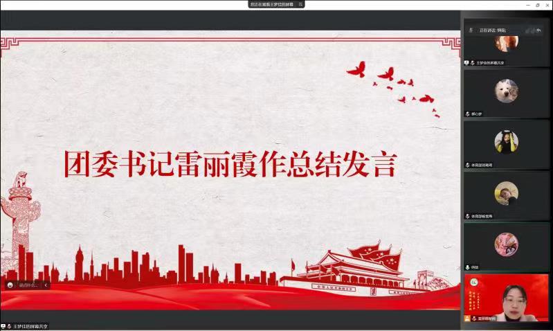 纳茹介绍与会人员,杨媛媛做2021-2022学年团委工作报告。在工作总结与回顾中,杨媛媛强调院团委加强了组织建设,发挥学生党员、团员的榜样性和示范性作用;不断加强思想政治引领;以新媒体平台为抓手,开辟宣传教育新阵地;加强实践育人,持续推进“第二课堂成绩单”制度的实施,着力打造主题鲜明的校园文化活动人。她提出了今后团委的目标与任务是:加强思想引领,推动校园文化建设,完善制度,规范团学骨干考核与培养,明晰职能定位,提高工作效能。