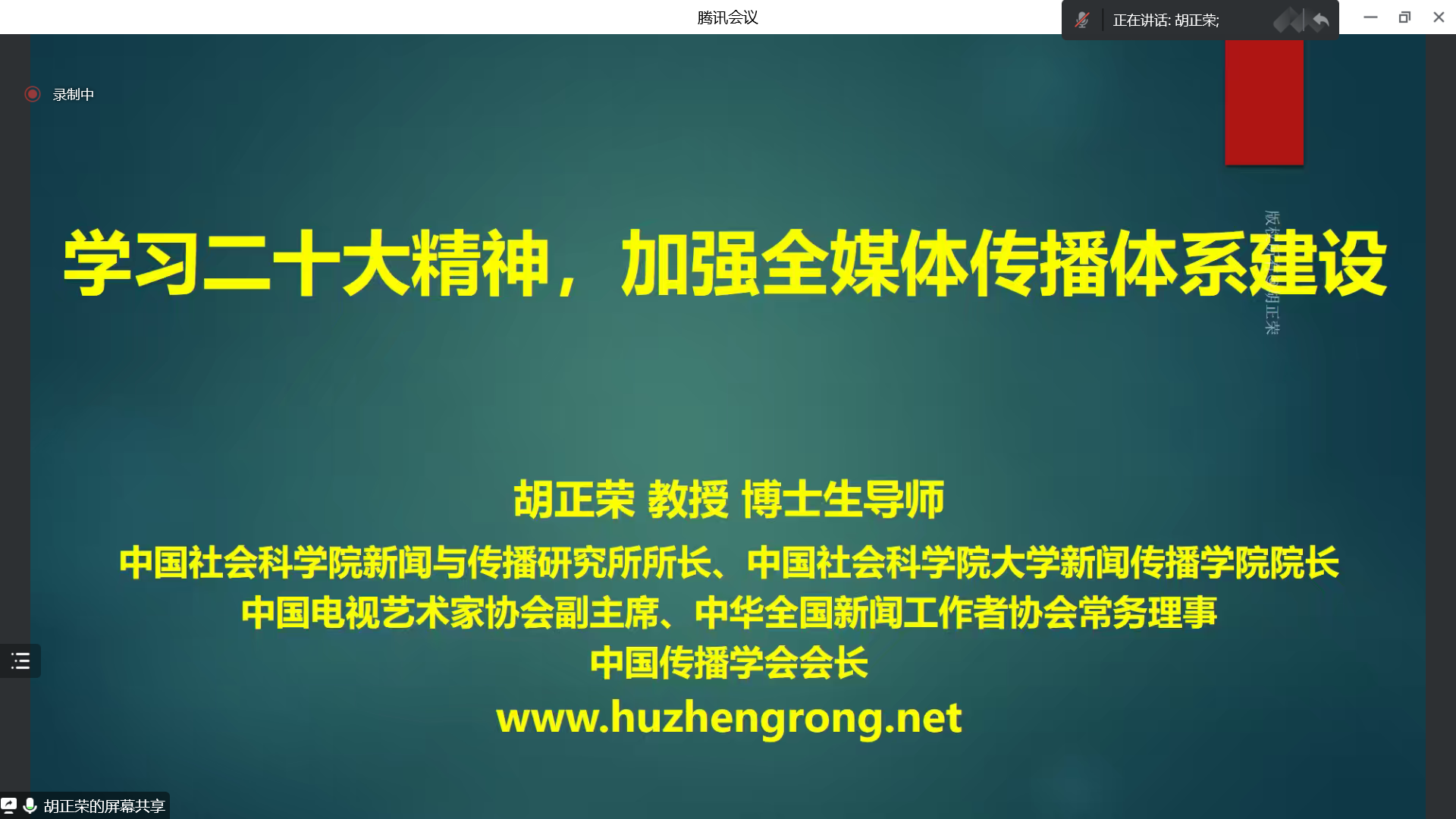 承办的第七期马克思主义新闻观培训以线上方式举行。此次培训的主题是“学习党的二十大精神,加强全媒体传播体系建设”,特邀中国社会科学院新闻与传播研究所所长、中国社会科学院大学电影先生