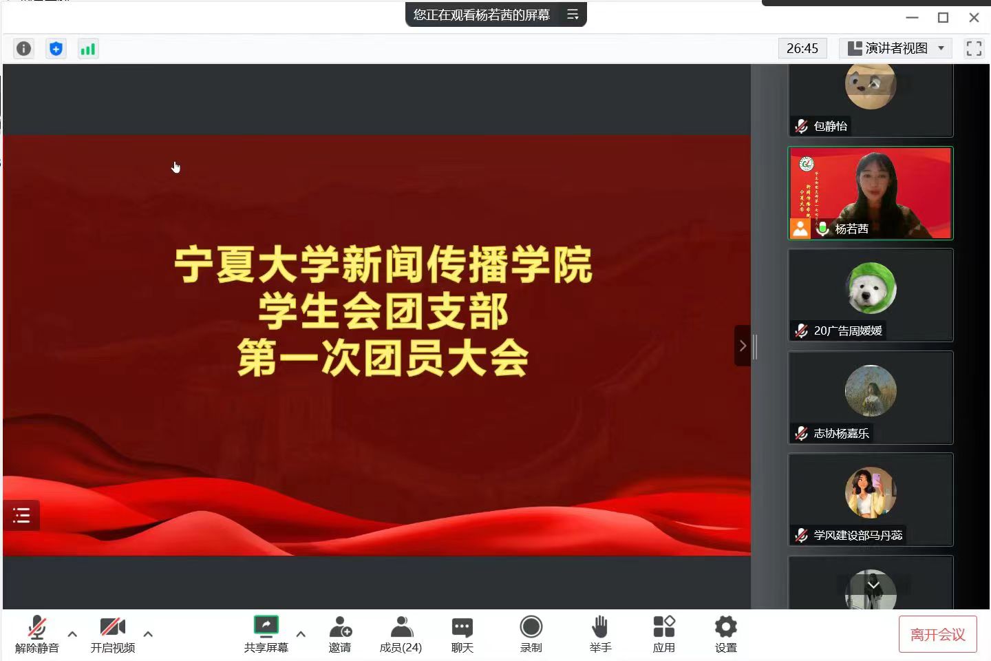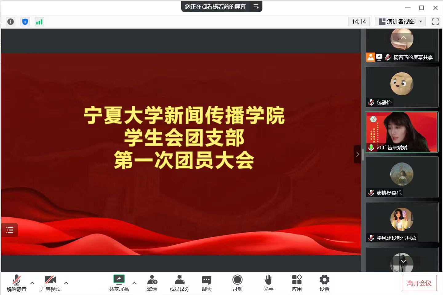 学生会团支部第一次团员大会在线上顺利召开。会议由学院学生会主席团成员杨若茜主持,来自电影先生