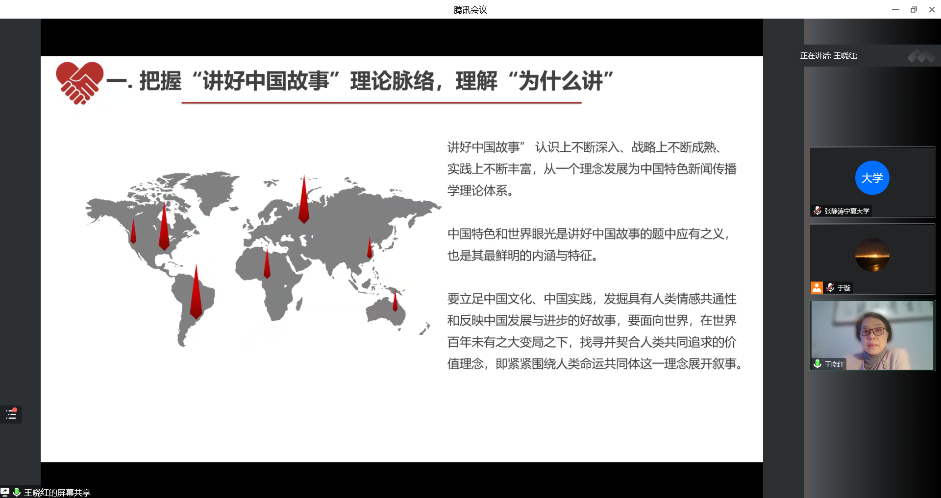 承办的第九期马克思主义新闻观培训以线上方式举行。此次培训的主题是“学习党的二十大精神,讲好中国式现代化故事”,特邀中国传媒大学本科生院院长、中国传媒大学网络视频研究中心主任王晓红教授主讲,电影先生