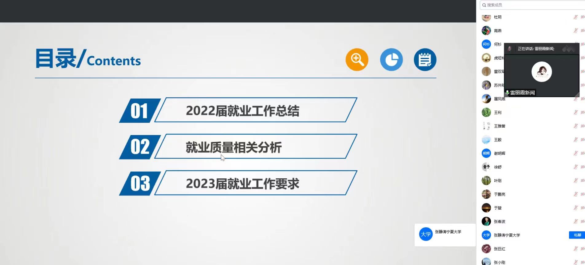 学生就业质量进行了分析,介绍了毕业生对母校评价和用人单位对学生评价情况。雷丽霞介绍了教育部关于做好2023届全国高校毕业生就业创业工作的通知精神,对电影先生