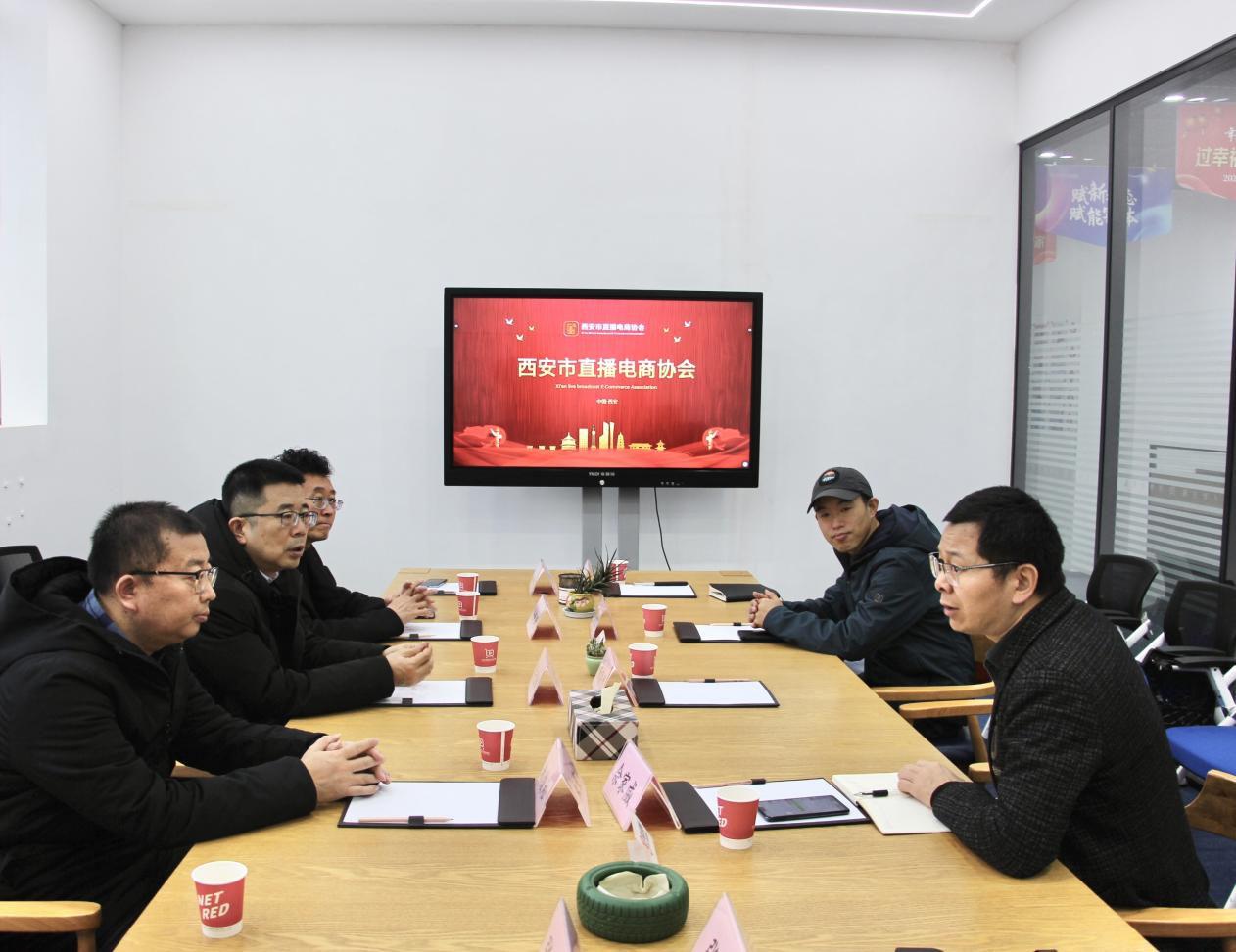 第三站,调研组一行来到西部云直播网红商城总部基地,调研了解西安直播电商协会成立背景、业务板块、赛事活动等。西安直播电商协会通过“直播+X”的方式、优化产业生态链、整合上下游资源,构建线上线下融合新零售商业模式,通过直播生态系统搭建服务城市,贡献力量。双方就直播教学与培训、数字化人才培养与孵化进行深入对话。西安直播电商协会会长杨森然结合电影先生