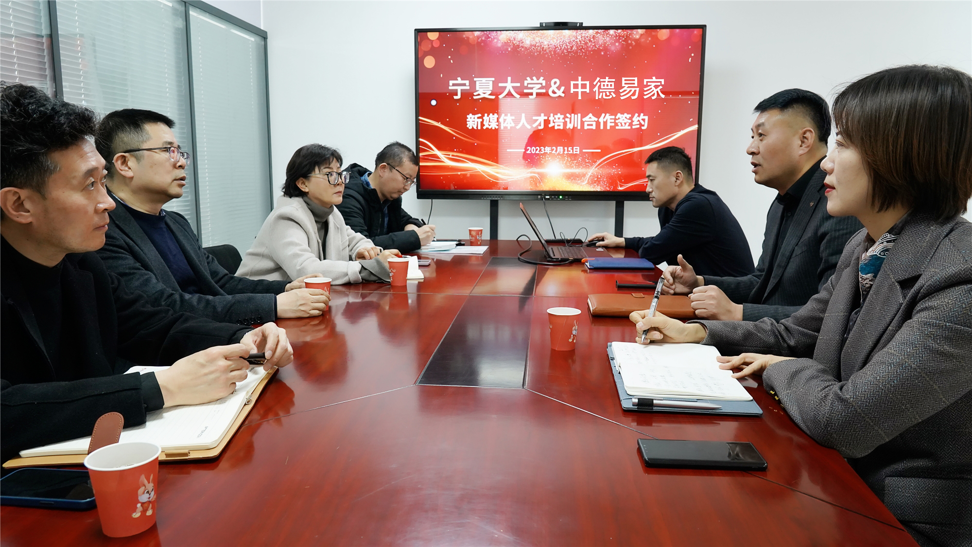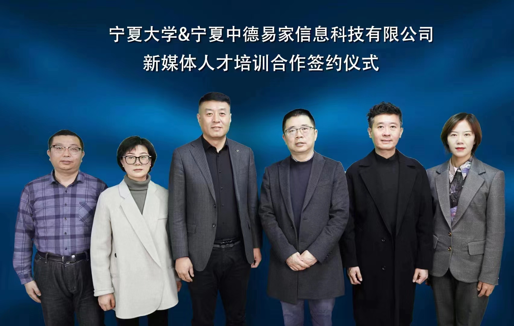 与搜狐宁夏(宁夏中德易家信息科技有限公司)签订新媒体(自媒体)人才培训协议。学院党总支书记潘瑞、执行院长李世举、副院长张静涛、广告系主任朱俊松,宁夏中德易家信息科技有限公司总经理董彦雨、副总经理吕文娟、视频部主任徐德宝参加了签约仪式。
