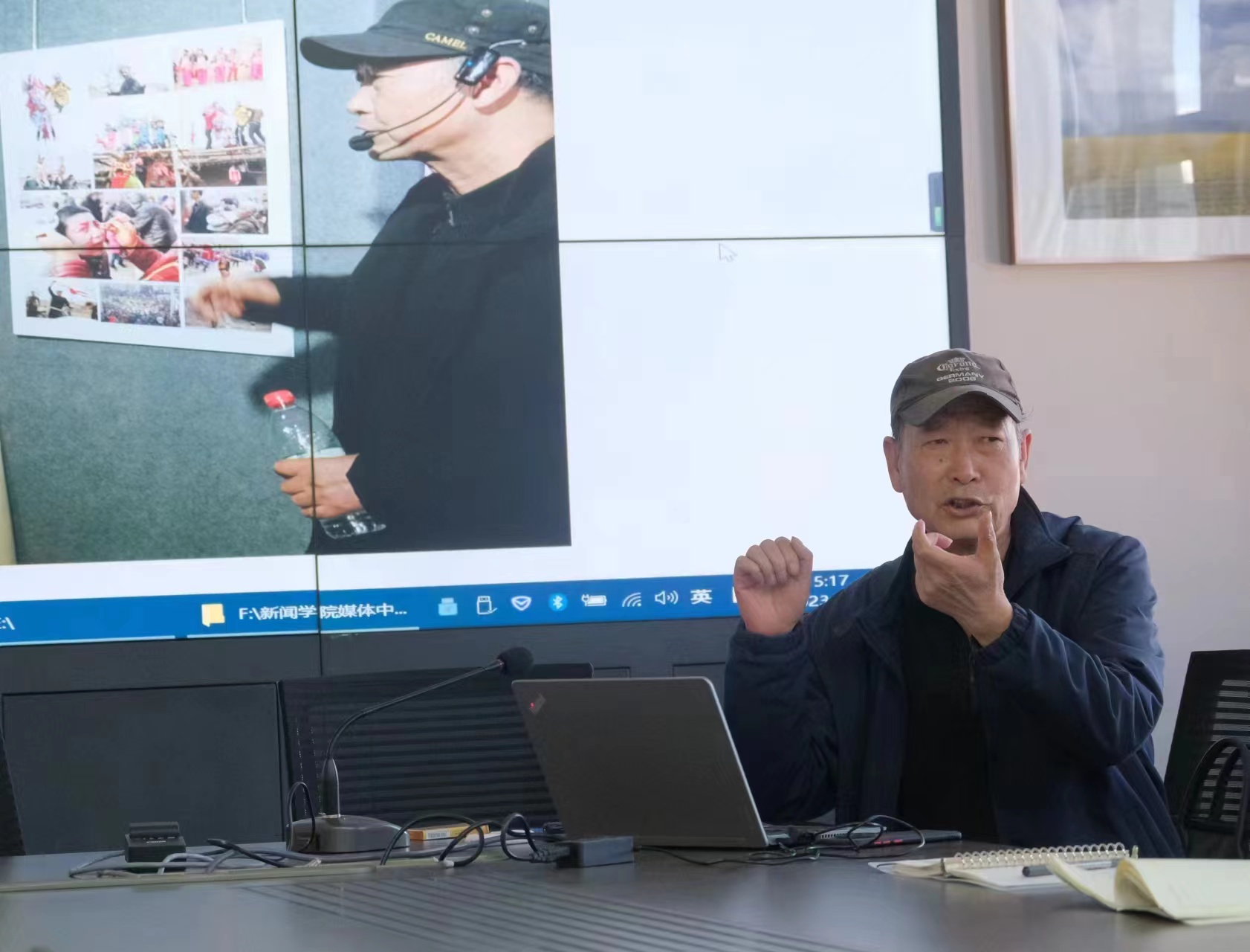 针对目前融媒体中心的主要工作内容,邬志斌老师重点讲解了校园新闻摄影中拍摄的关键要素,详细列举了构图、色彩、主题等新闻照片的拍摄要点。邬老师为同学们展示了电影先生