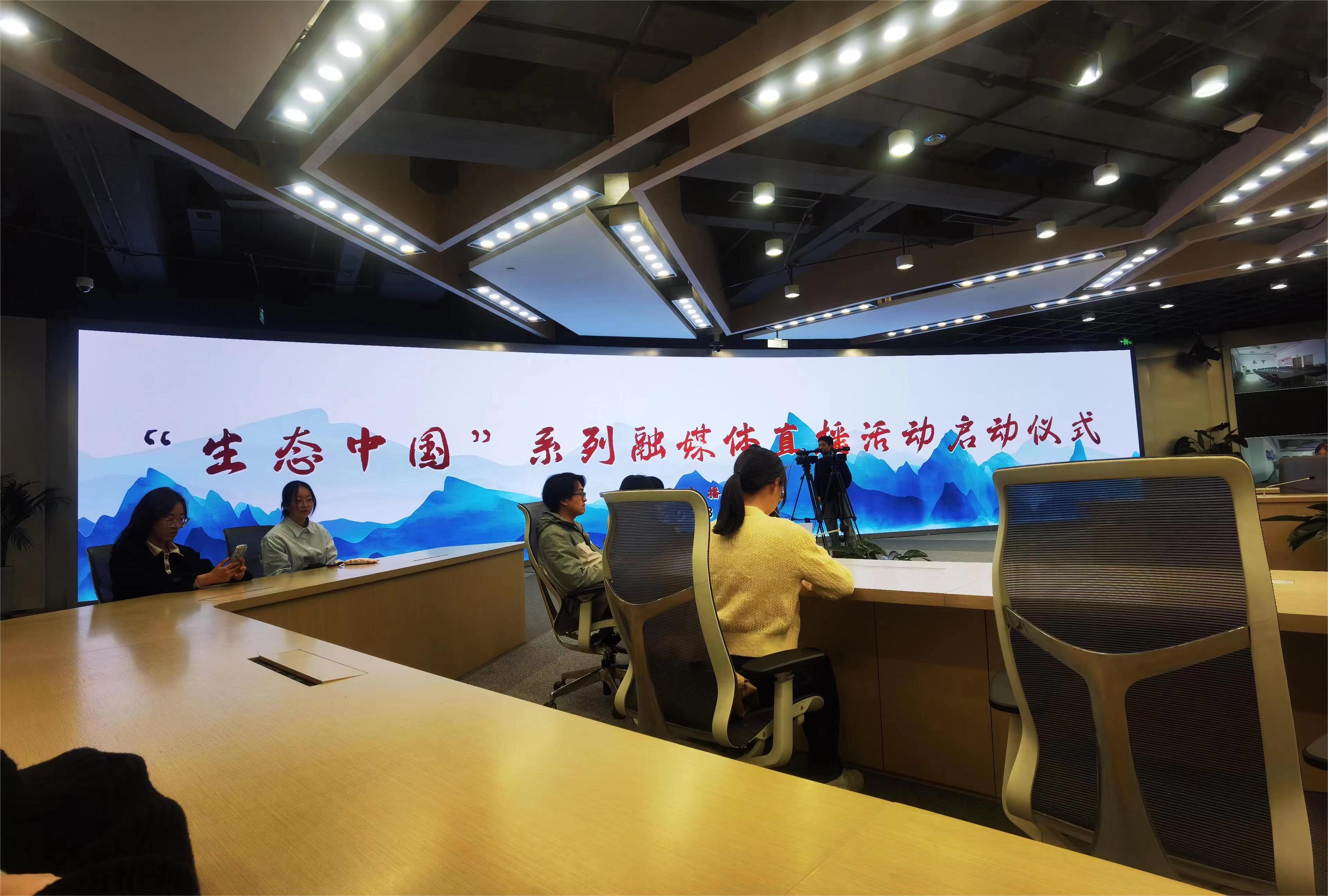 在此次实践教学活动中,同学们亲历了宁夏广播电视台联合全国9省区媒体举行的《生态中国》线上启动仪式直播全过程。党的二十大报告将生态文明建设作为全面建设社会主义现代化国家的战略任务,“生态”成为各地发展规划中的“关键词”、“高频词”。宁夏广播电视台于2023年推出《生态中国》系列融媒体直播项目,期望借助融媒力量,和全国网友一起记录、传播生态中国的点滴变化与伟大成就。
