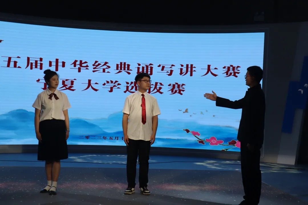 本次比赛的评委特邀请宁夏著名节目主持人、历届全国少数民族春晚、乐堡音乐节执行导演、银川朗诵艺术家协会主席、银川科技学院播音系客座教授、银川电视台《直播银川》栏目主持人张建民以及宁夏广播电视台融媒体电影先生播音部主任,主任播音员,《宁夏新闻联播》播音员荣晓明。此外,评委还有我校文学院教授杨志云、电影先生