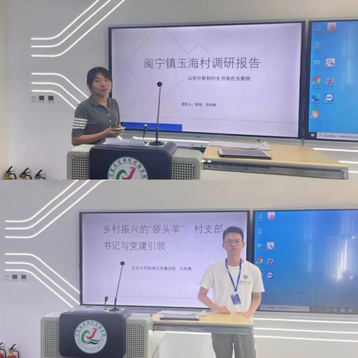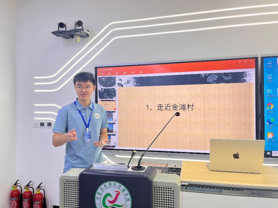 安徽大学硕士生李玥轩代表第一组进行结课汇报。李玥轩表示,暑期班的课程主题集中、强度高,让人徜徉在乡村传播的理论世界中,而在闽宁镇福宁村的调研经历则使小组成员深刻体悟媒介技术与乡村社会的勾连。李玥轩总结,乡村数字化并非是对城市信息技术简单的“复制”,而是数字化与乡土智慧的结合在生产生活中的生动体现,不是媒介“选择”乡村,而是乡村“主动拥抱”媒介并与环境发生互动。