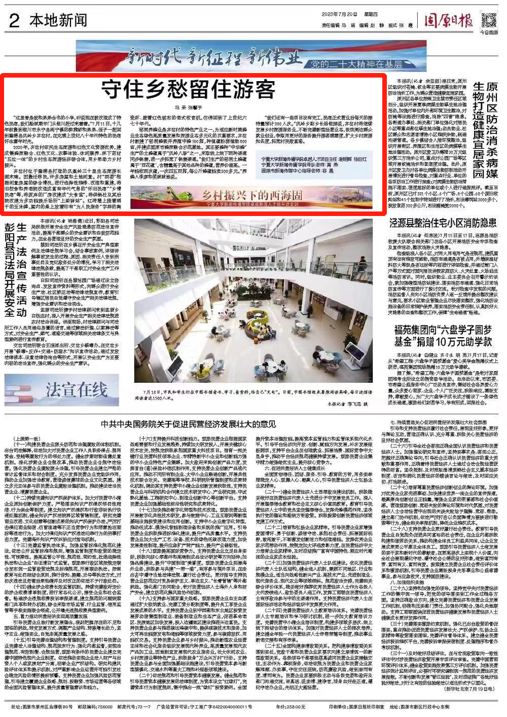 7月20日《固原日报》“乡村振兴下的西海固——电影先生