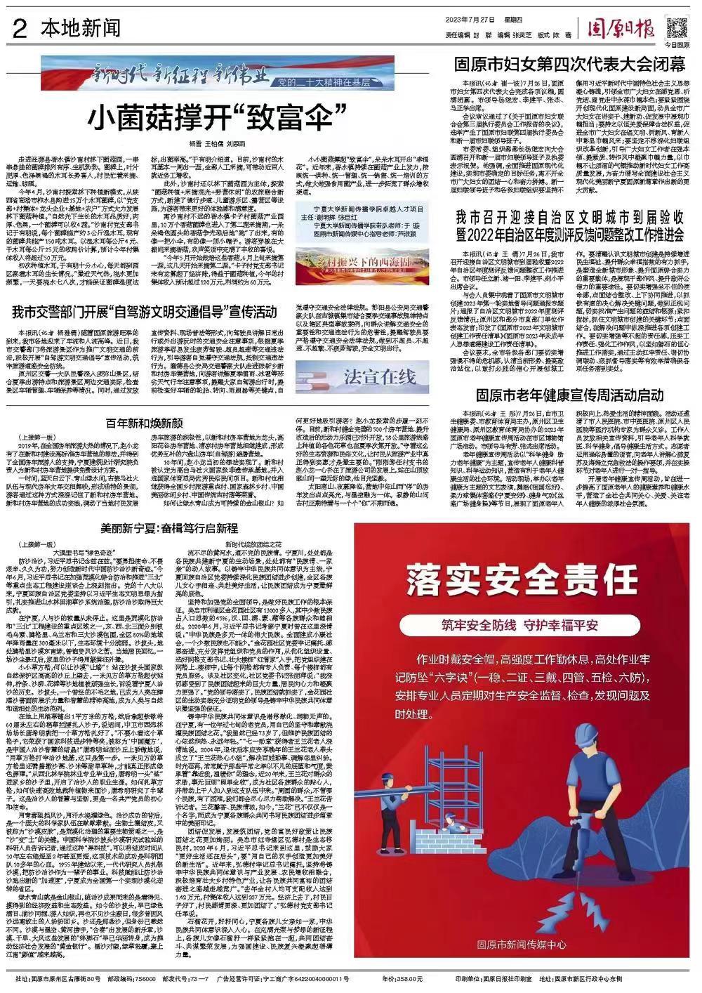 7月27日《固原日报》“乡村振兴下的西海固——电影先生