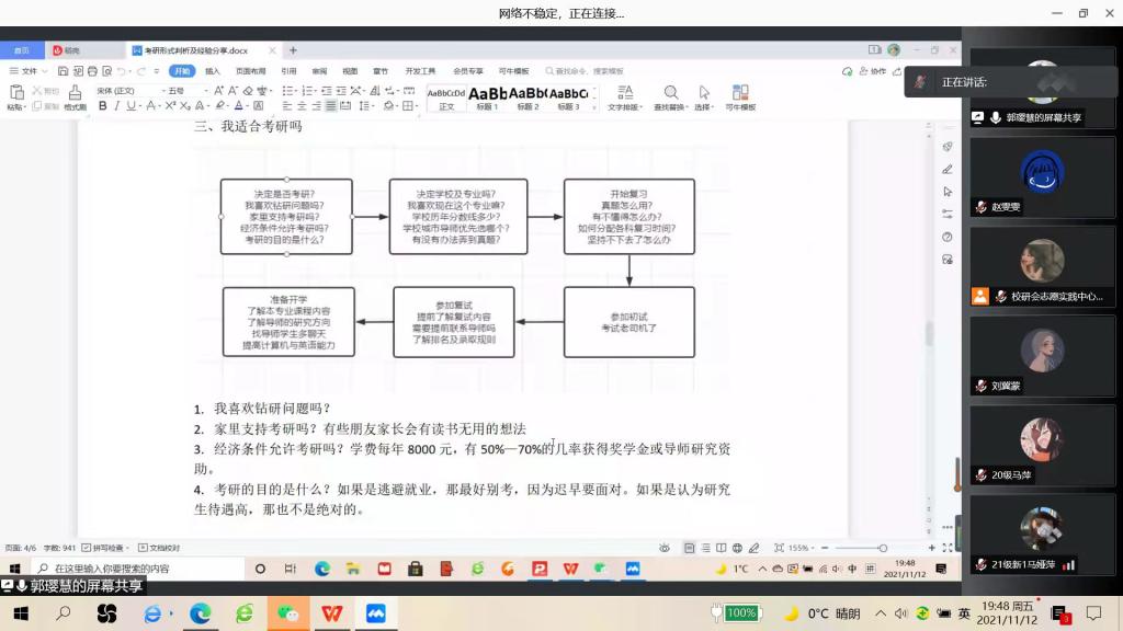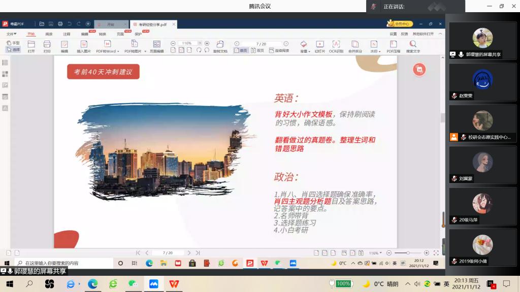 于11月12日下午在线上开展研究生志愿帮扶活动讲座,我校研究生会志愿实践中心负责人董春娣主持,21级研究生郭璎慧、关瑶瑶主讲,学院全体学生参加。