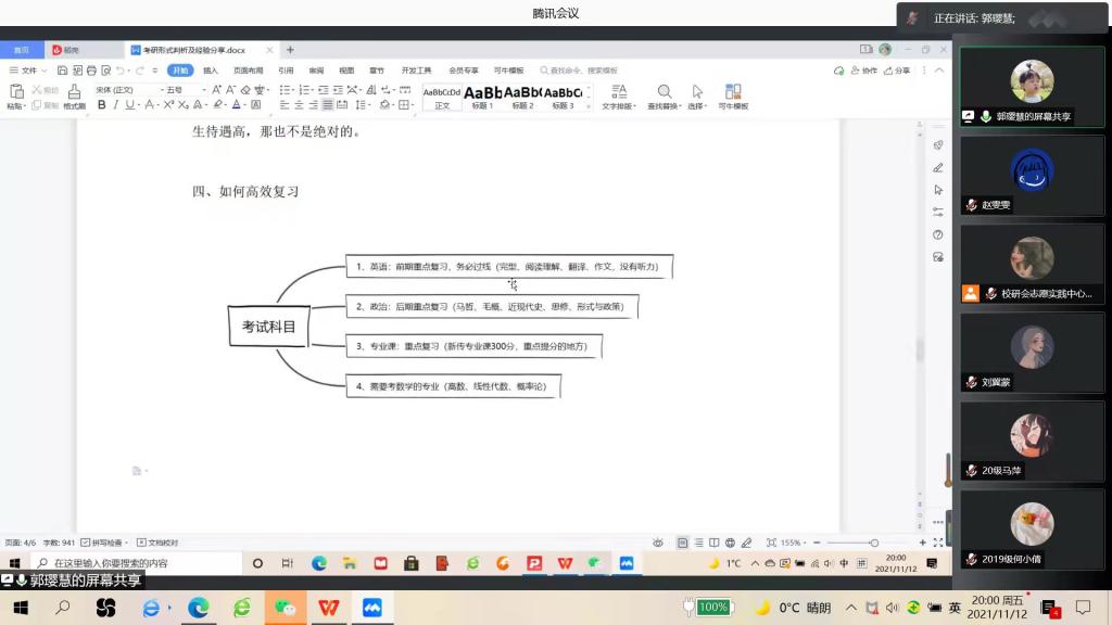 讲座中,郭璎慧结合自身学习经验,向同学们分享了考研路上的经验方法,具体分为研究生是什么、考研形式、如何高效学习三大方面。