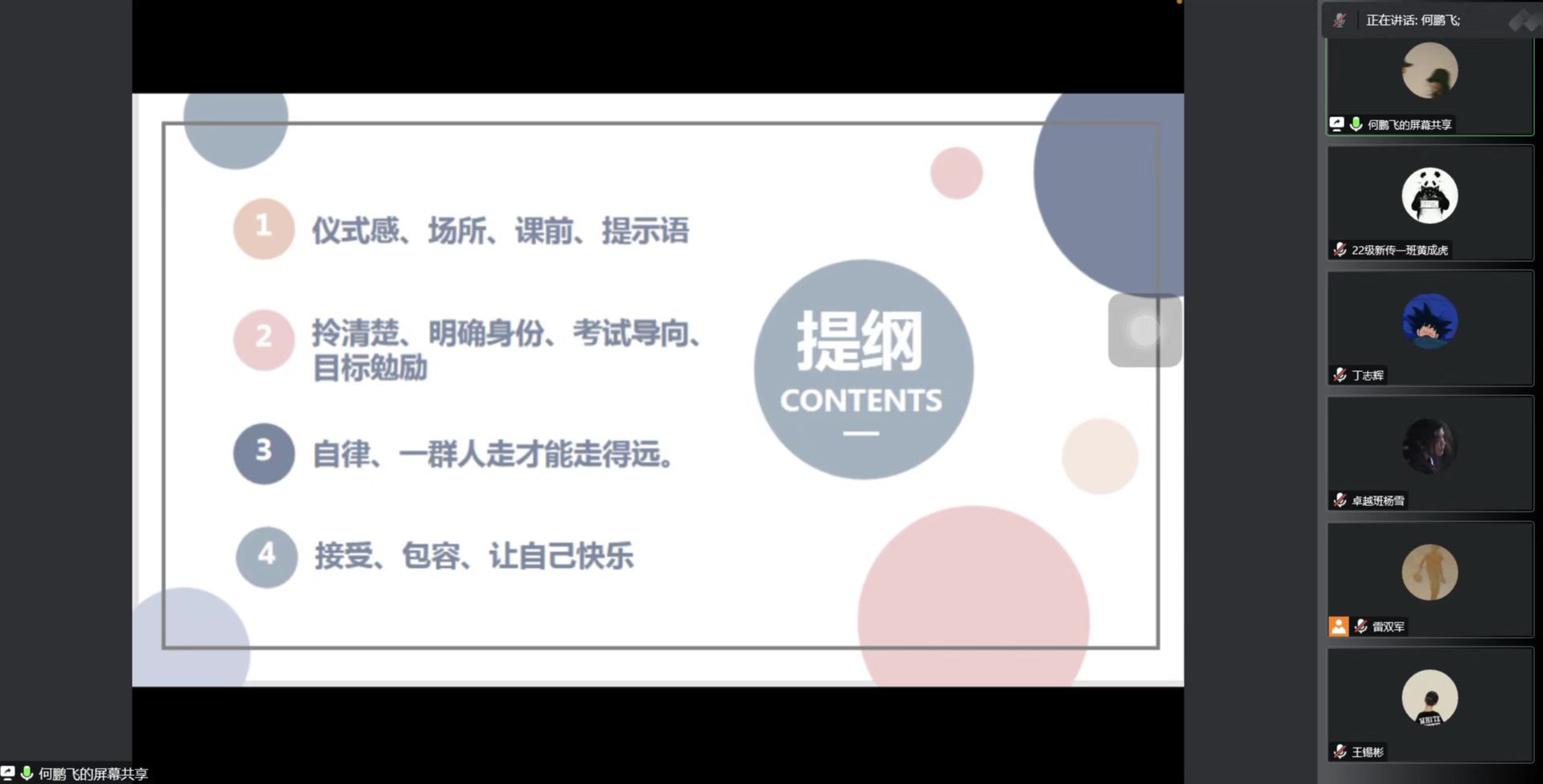 雷双军在总结时强调,学习贵在坚持和自律,希望同学们通过学习学长学姐分享的经验,用更加科学的方法和更端正的态度对待线上学习。