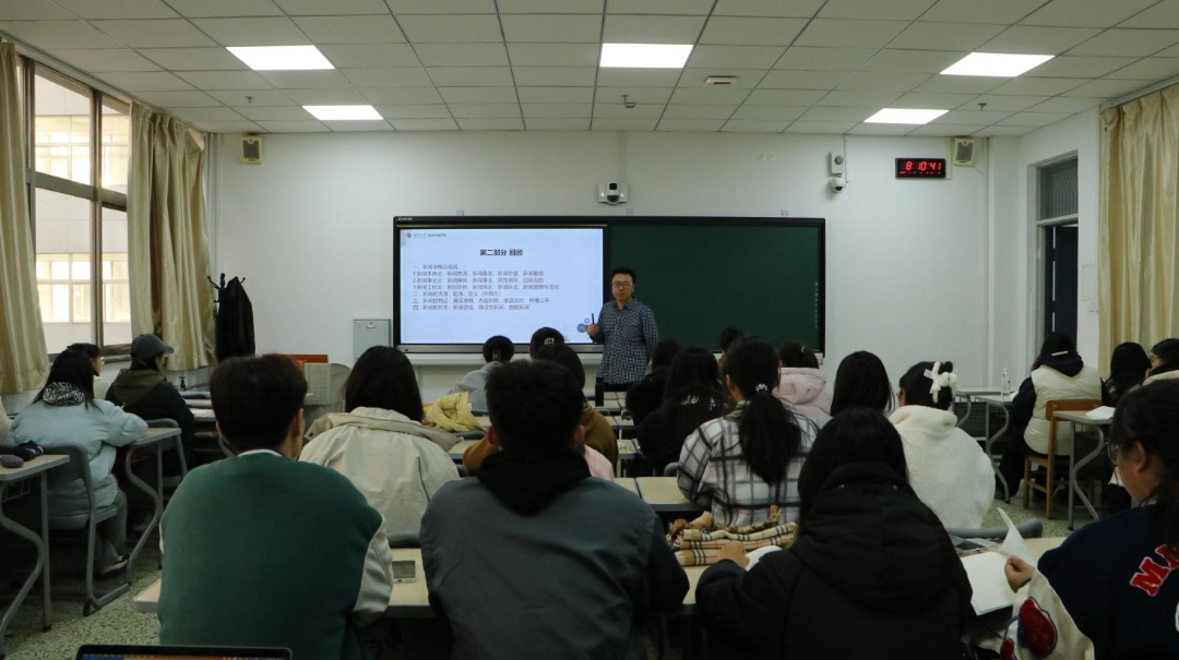 11月8日上午,按照学校期中教学检查要求,新闻系以叶刚老师面向2023级新闻传播学类1班主讲的“新闻学概论”为示范观摩课,积极组织开展教学检查活动。
