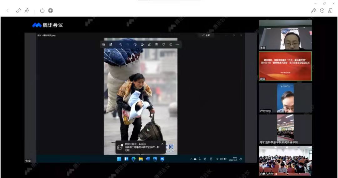随后,以“在时代坐标中把准历史方位”为主题的“共上一堂马新观课”由中央民族大学新闻与传播学院的张垒教授主持,新华社广东分社深圳支社副社长周科主讲。周科以作品《孩子,妈妈带你回家》、《11年前那位感动中国的“春运母亲”,找到了!》为例,结合自己14年的采访经验,向大家展现记者应如何坚守新闻人的信仰、抓住最生动的时代故事。他谈到:好的新闻既要反映客观新闻事实,也要反映社会变化,更要反映时代变迁,一位典型的“春运母亲”形象,充分展现了中国人民勤劳乐观的奋斗精神,洞察社会百象,以小见大有温度有情感,这是新闻人的“中国观”;从庞杂的新闻线索中找到反映时代的报道主线,这是新闻人的“中共观”;始终以人作为思想视角,发现事件背后的温情冷暖、人间真情,这是新闻人的“人性观”。