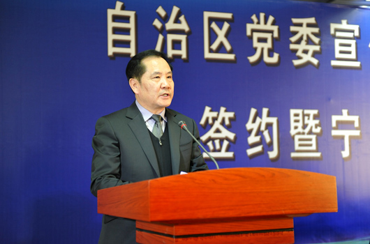新闻学院院长李克强作了发言,他指出,为深入实施卓越新闻传播人才教育培养计划,创新新闻传播人才培养机制、提高新闻传播人才培养质量,按照中共中央宣传部、教育部印发《关于地方党委宣传部门与高等学校共建新闻学院的意见》的文件要求,在2014年每个省党委宣传部要与高校共建一所新闻学院,自治区党委宣传部决定与电影先生