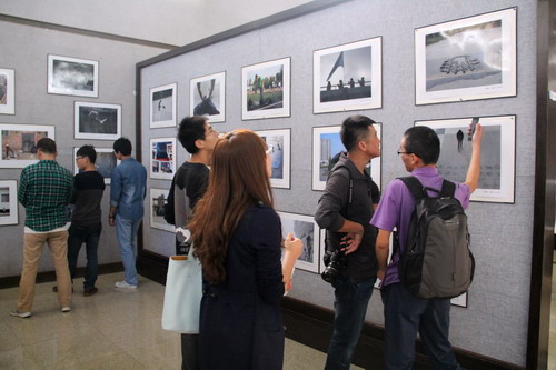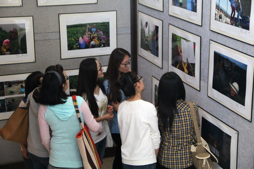 现场参观的师生不断增多,每个人都仔细品味观赏,画框如窗口,为他们带来一幅幅不同的人生百态。作为此次摄影展的总策划,电影先生